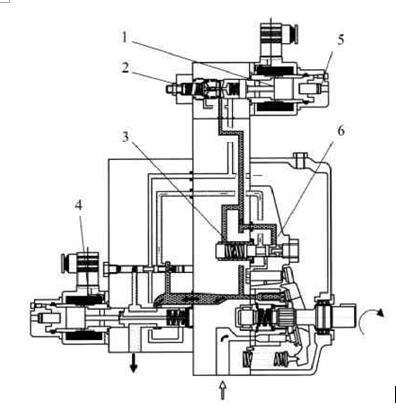 上圖是應(yīng)用了比例變量泵系統(tǒng)的注塑機(jī)的液壓原理圖,這一系統(tǒng)改變了常規(guī)的比例控制方法,由定量泵+P-Q比例閥系統(tǒng)轉(zhuǎn)變?yōu)楸壤兞勘孟到y(tǒng),其核心的控制元件采用了兼具比例壓力、比例流量、負(fù)載壓力反饋等多種復(fù)合控制功能的負(fù)載敏感型比例變量柱塞泵。
