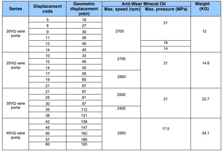 伊頓威格士VQ系列葉片泵的產(chǎn)品規(guī)格: