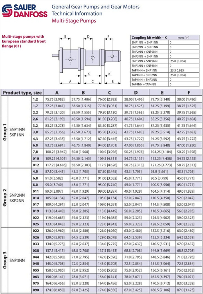 丹佛斯 Group 1 泵(編碼 SNP1NN、SKP1NN)有 11 種排量可供選擇,從 1.18 到 12 cc/rev:1.2 | 1.7 | 2.2 | 2.6 | 3.2 | 3.8 | 4.3 | 6.0 | 7.8 | 10 | 12